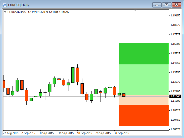The indicator has a very simple graphic but effective, above the opening price you will have a light green color and under the opening price there is a red light.